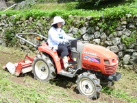 高知短大の水谷先生ら6名が参加し、畑の草刈りと耕うんを行いました。