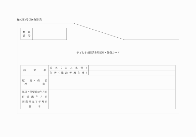 (2) 子ども手当関係書類返戻・保留カード(以下「返戻・保留カード」という。)