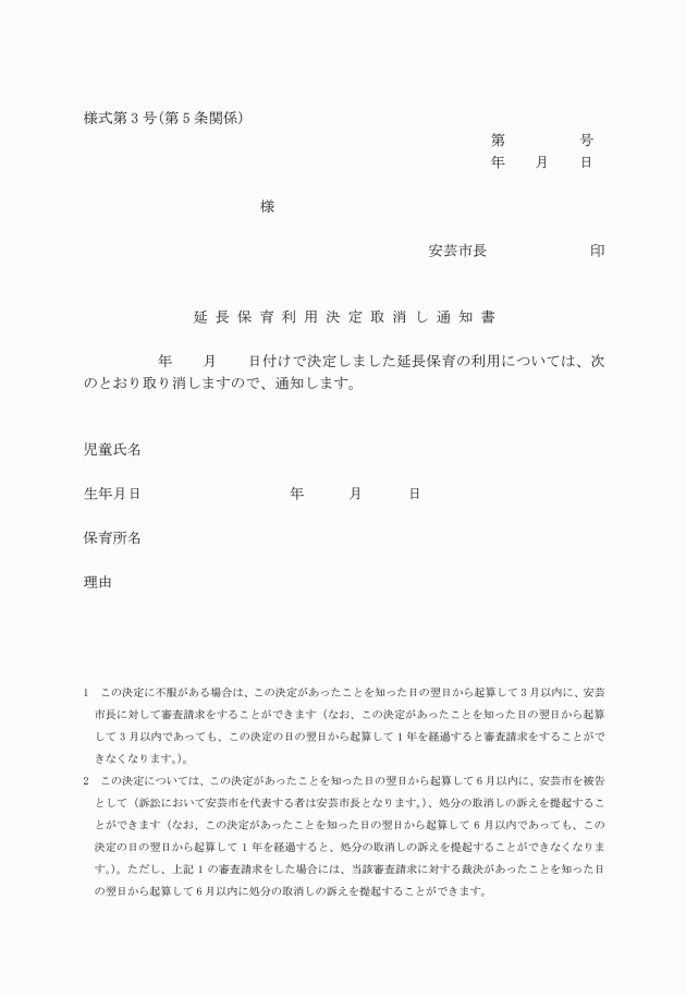 第3条 事業を利用しようとする入所児童の保護者は、延長保育利用申請書(様式第1号)を市長に提出しなければならない。
